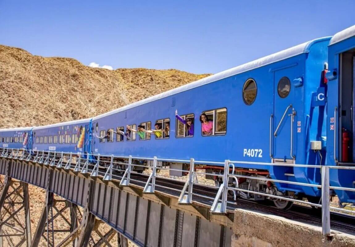 El tour inicia en la Estación de Trenes de San Antonio de los Cobres, donde los pasajeros embarcan rumbo al magnífico Viaducto La Polvorilla.